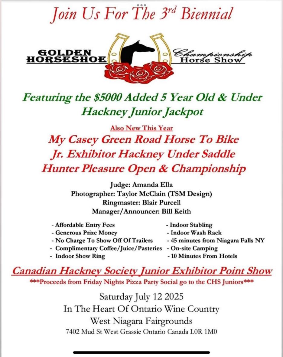 La liste de prix du Golden Horseshoe Championship 2025 est désormais disponible. Pour en obtenir un exemplaire, veuillez m'envoyer un message personnel avec votre adresse courriel ou m'écrire à thebk72@hotmail.com.